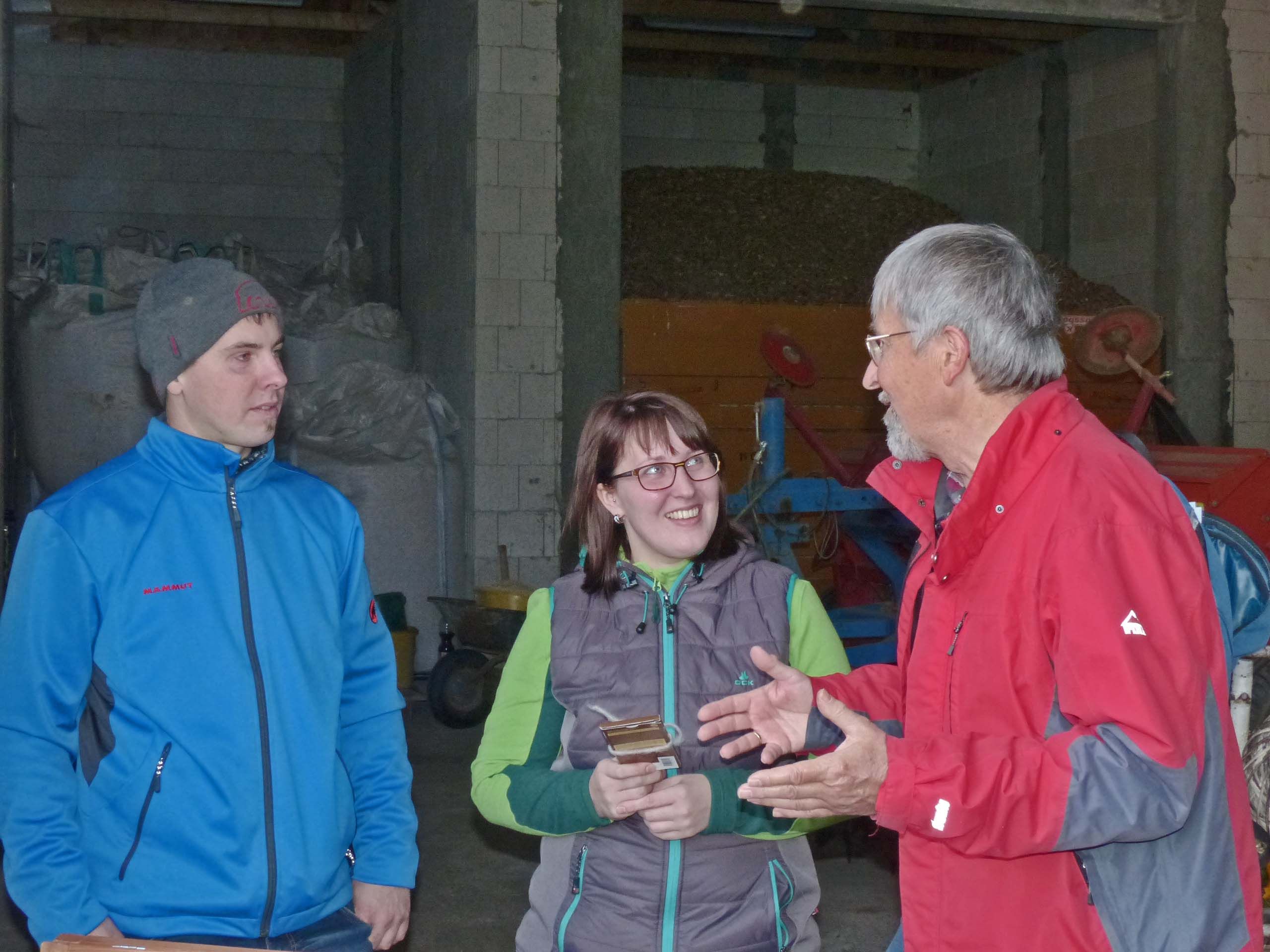 Nach dem Abstieg durch den „Wilden Grund“ nach Ginolfs, kam die Gruppe auf den Biohof Manger, wo man seinen Hunger mit einer Gulaschsuppe und mit selbst gebackenem Kuchen stillen konnte. Helmut Bär bedankte sich bei Joachim Urban und dessen Ehefrau, sowie dem Ehepaar Manger (s.Bild) mit einem kleinen Präsent und betonte, dass ihn besonders die artgerechte Haltung der Tiere beeindrucken würde.