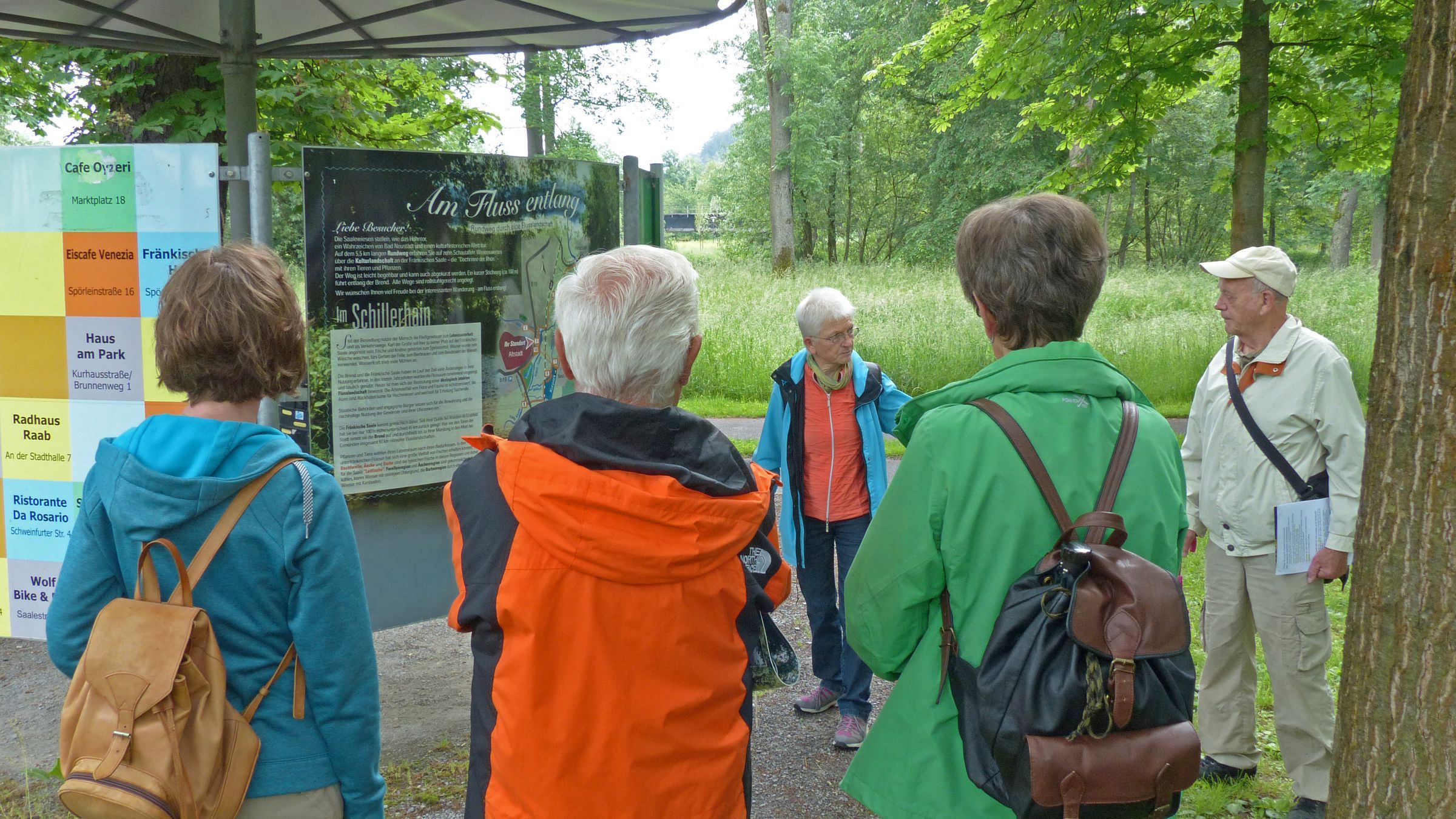 Am 04.06 führten Franziska und Jürgen Burmester von der BN-Ortsgruppe Bad Neustadt zusammen mit Siegfried Badermann (früher WWA Bad Kissingen) eine kleine Gruppe entlang des von ihnen initiierten und mit 10 Infotafeln strukturierten Flusslehrpfades „Am Fluss entlang“.